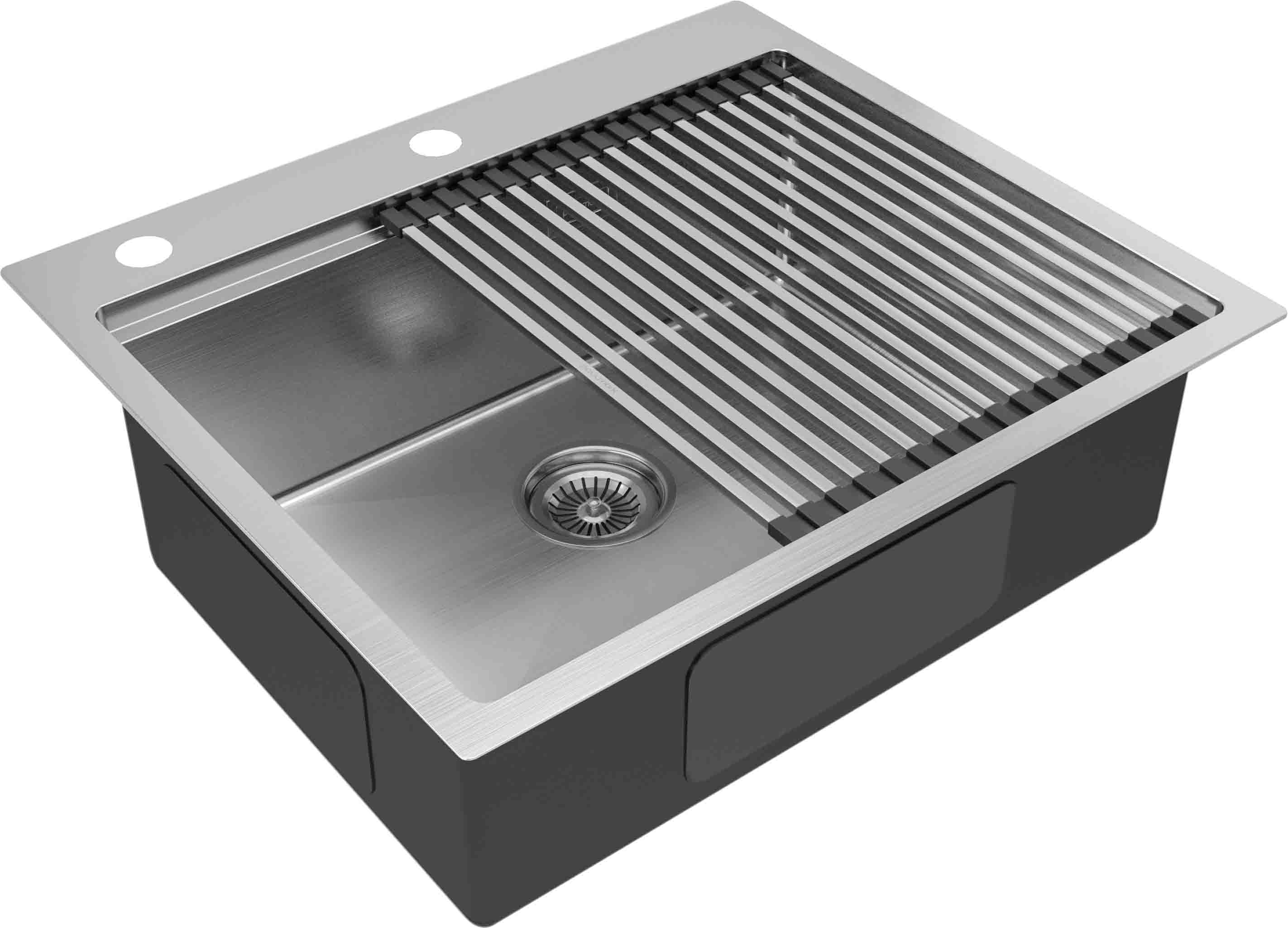 Стильный и многофункциональный комплект мойки и ролл-мата из высококачественной нержавеющей стали для создания комфортной рабочей зоны на вашей кухне.