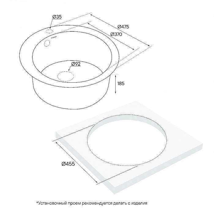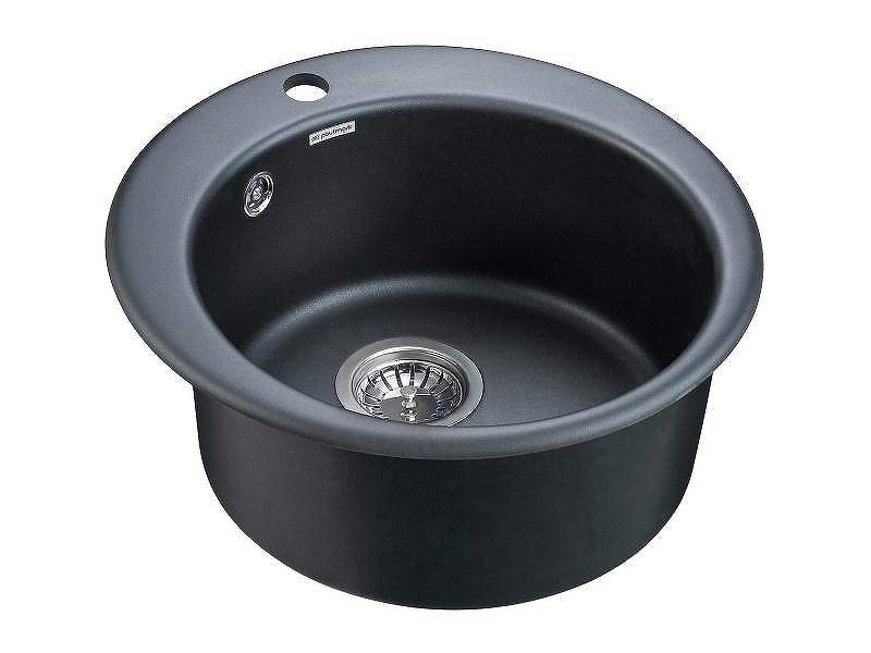 Мойка для кухни диаметром 47.5 см. Стильная и прочная гранитная мойка круглой формы с готовым отверстием для смесителя. Материал мойки не нужно герметизировать, и, поскольку он не пористый, то он максимально устойчив к окрашиванию.
