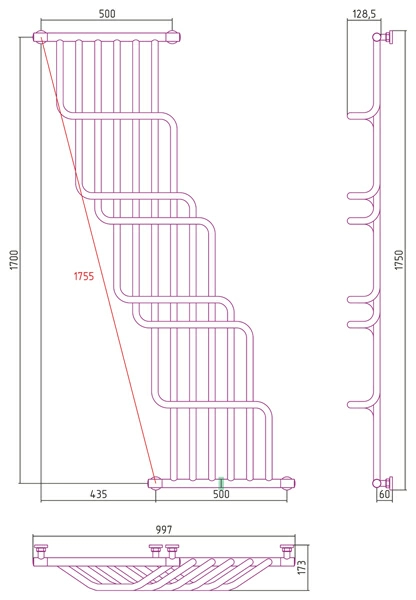 Полотенцесушитель водяной Сунержа Нега 170х100, 00-0225-1710