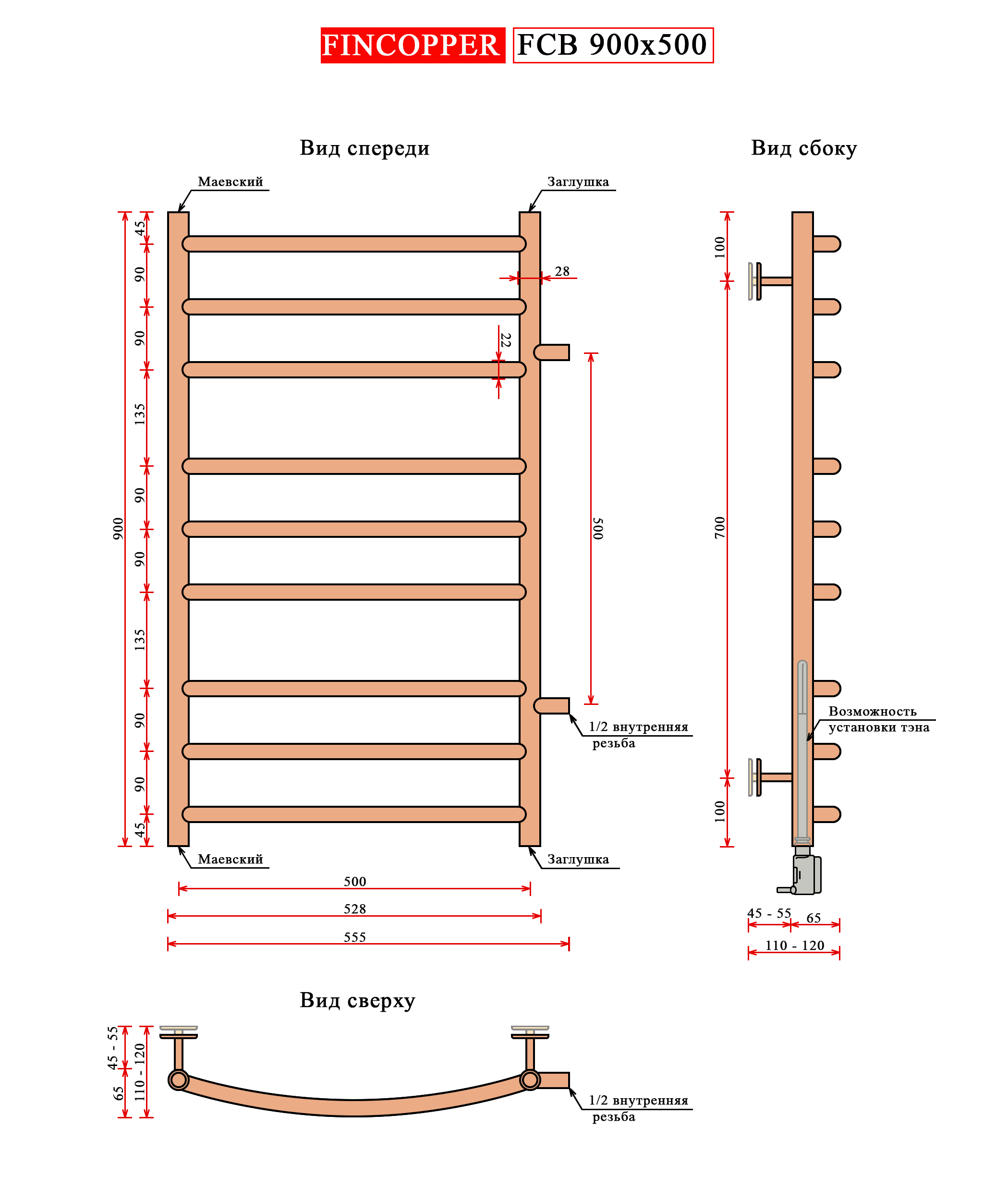 Полотенцесушитель водяной Fincopper FCB 900*500 белый RAL 9016