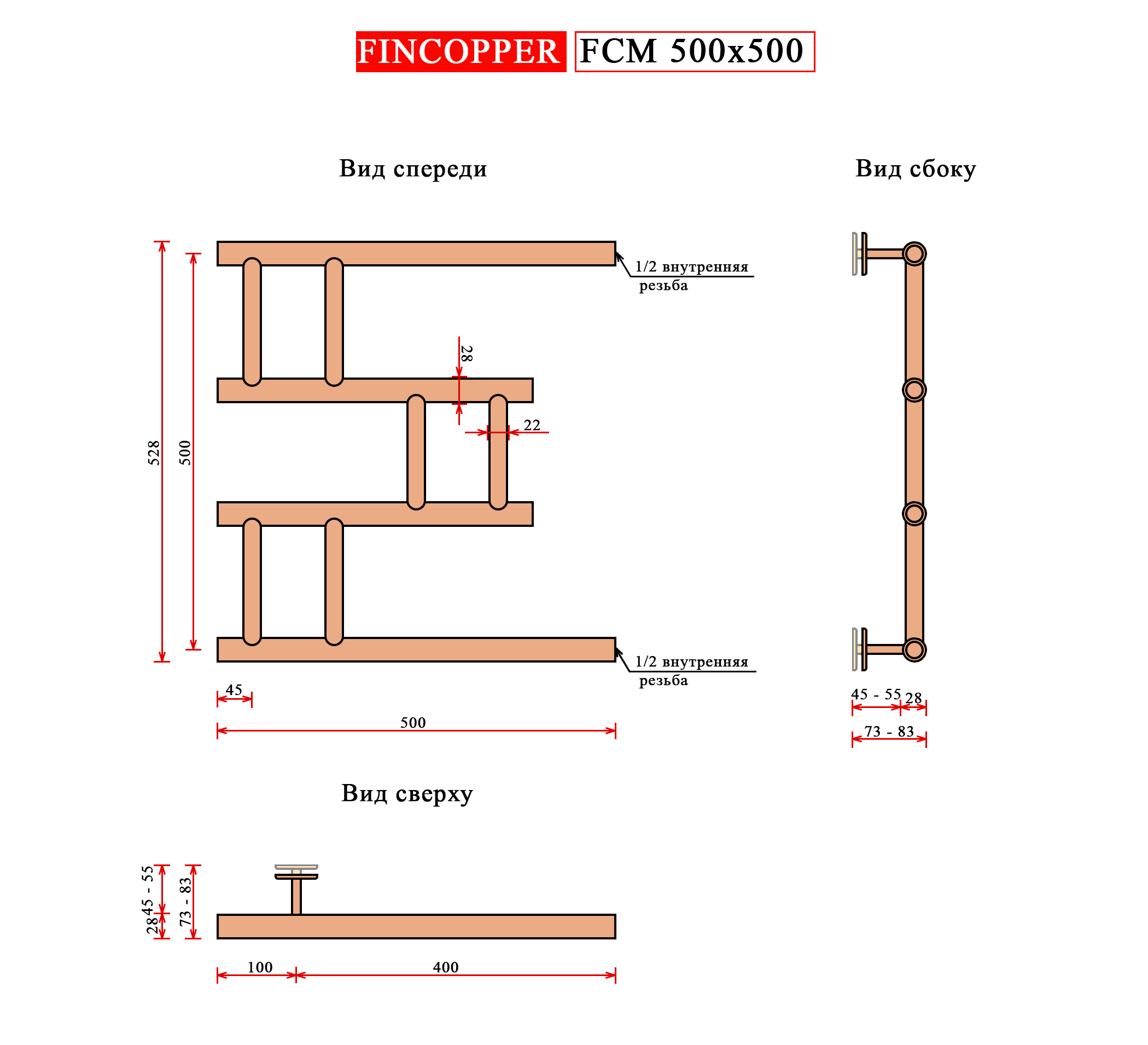 Полотенцесушитель водяной Fincopper FCM 500*500 черный RAL 9005