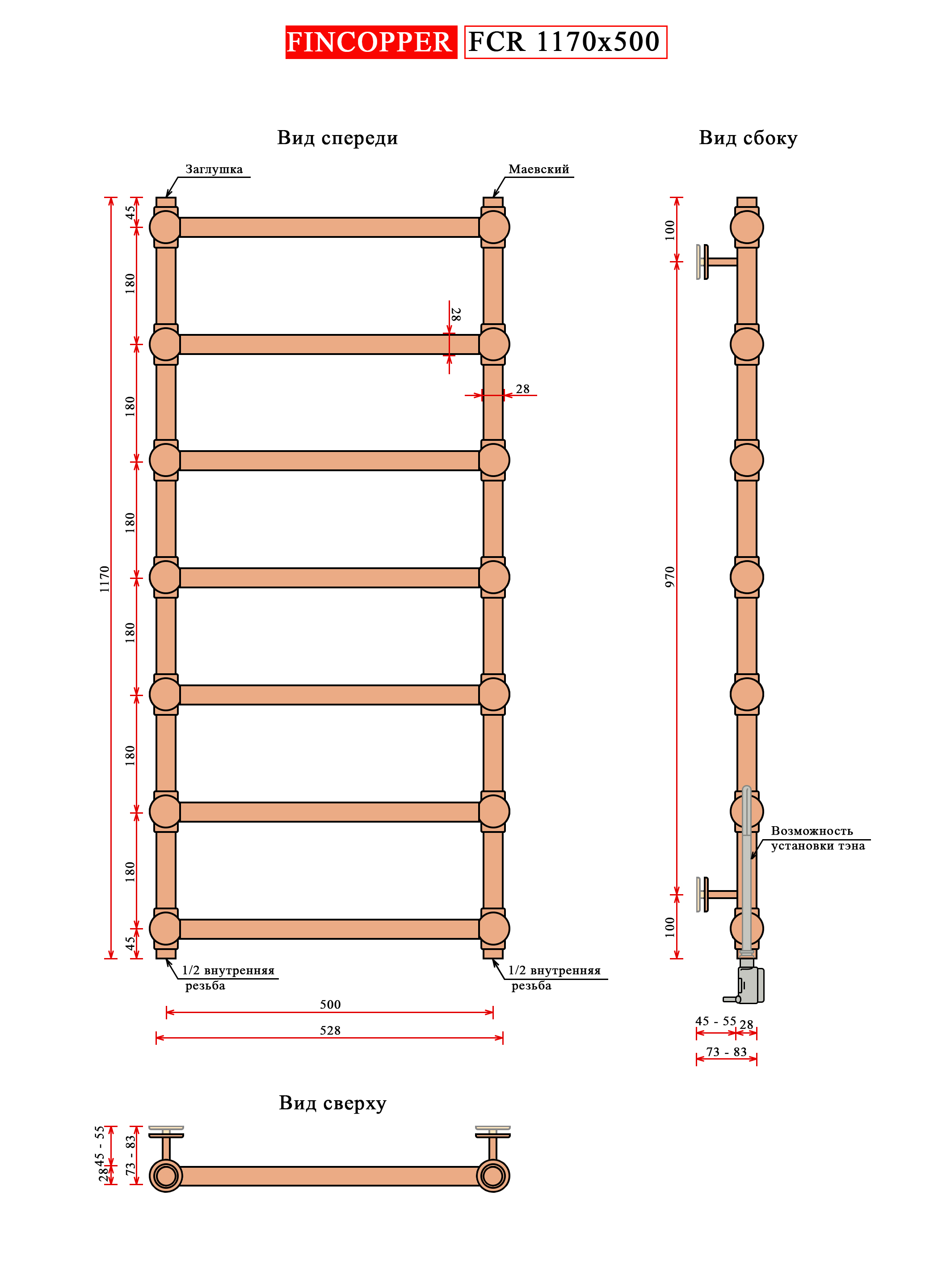 Полотенцесушитель водяной Fincopper FCR 1170*500 белый RAL 9016
