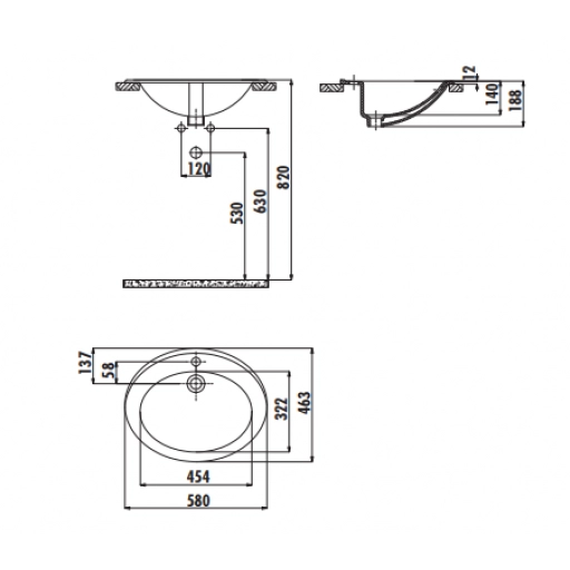 Умывальник TP овальный врезной на столешницу 46*58 см, белый, TP230-00CB00E-0000