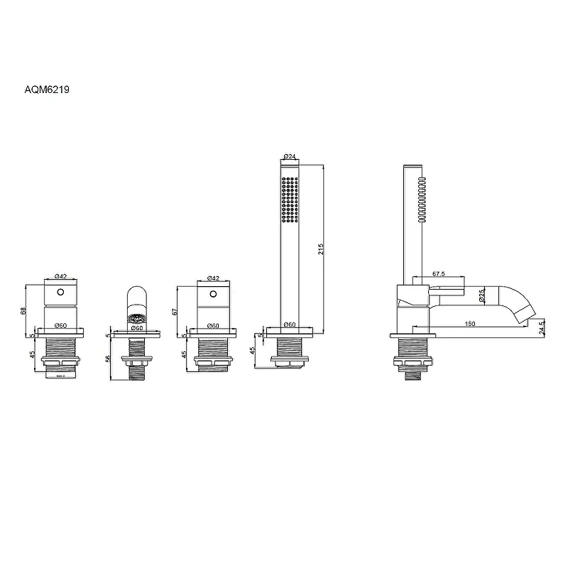 Смеситель для ванны на 4 отверстия. Материал: латунь.